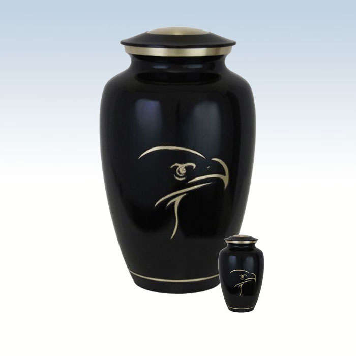 Black Eagle Keepsake Urn is available in a limited quantity until gone. Has a threaded, screw-on lid for security.